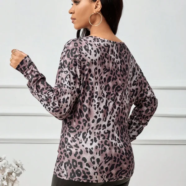 SMY Ladiora Women’s Drop Shoulder Drop Shoulder Leopard Print Long Sleeve T-Shirt