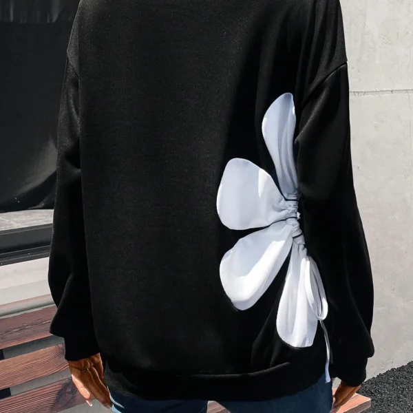 SMY Women’s Casual Hollow-Out Drawstring Floral Sweatshirt