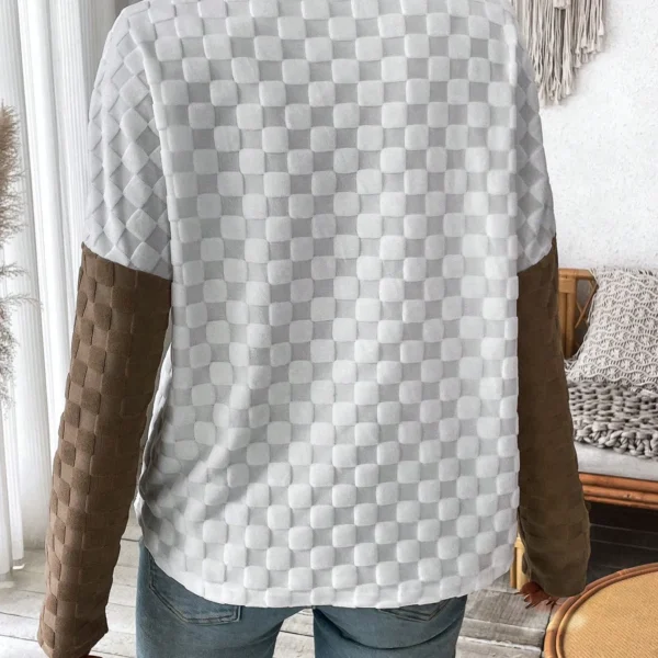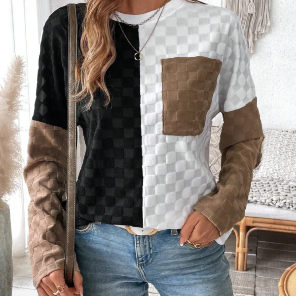 SMY Slayr Women’s Casual Color Block Plaid Print Crew Neck T-Shirt