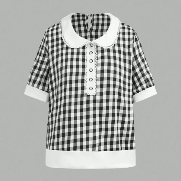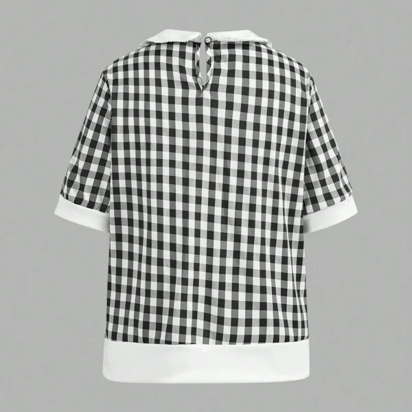 SMY Women’s Fashion Plaid Print Peter Pan Collar Casual Short Sleeve T-Shirt