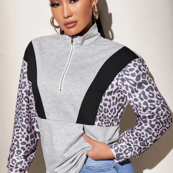 SMY Color Blocked Style Casual Round Neck Long Hoodie