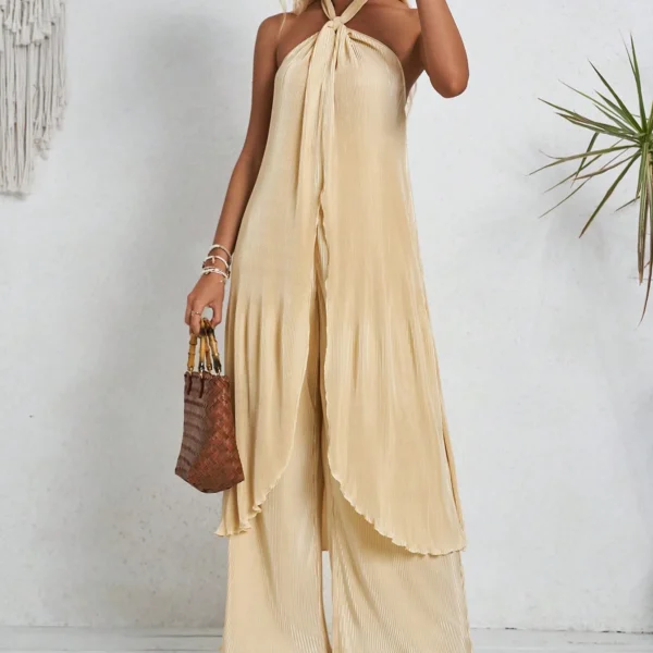 SMY Gorgeous Trend Neck Hanging Casual Two-Piece Set