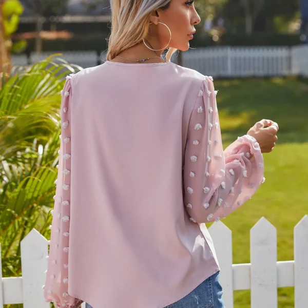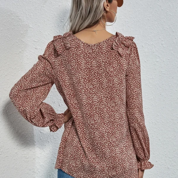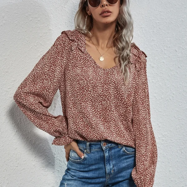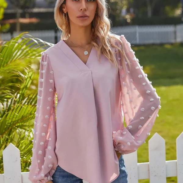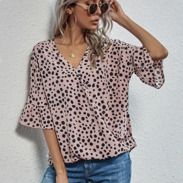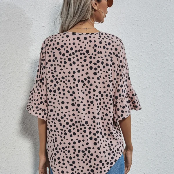 SMY Small V-Neck Dot Print Shirt For Spring, Autumn