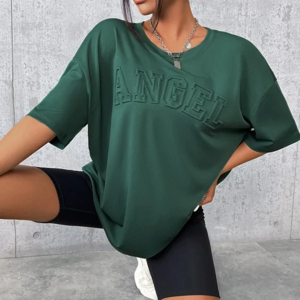 SMY 3D ANGEL Letter Printed Casual Round Neck Short Sleeved T-Shirt