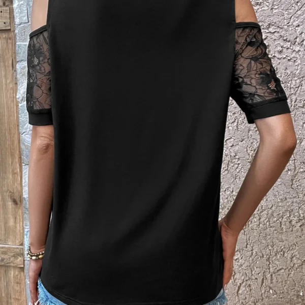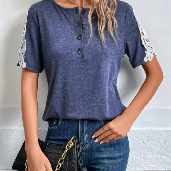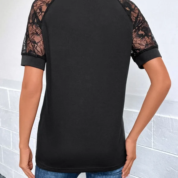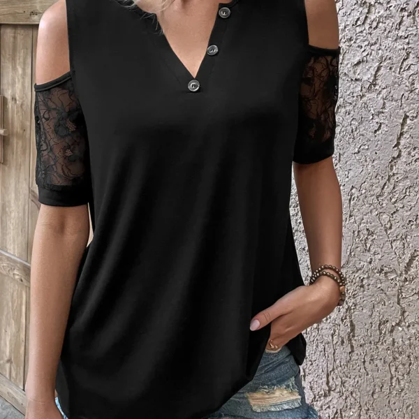 SMY Elegant Lace Cuffs Trend V-Neck T-Shirt With Notch Design
