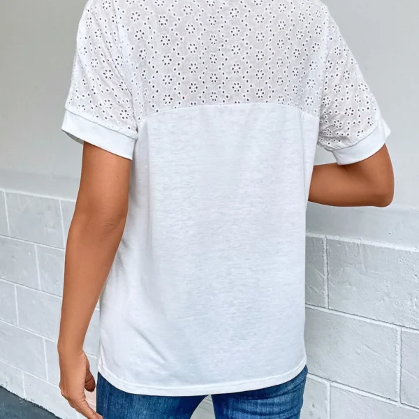 SMY Small Round Neck Short Sleeved Lace Stitching T-Shirt