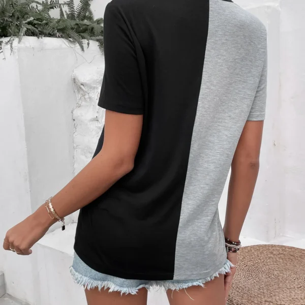 SMY Casual Color Block Round Neck Short Sleeved T-Shirt
