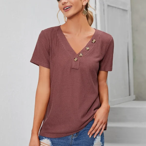 SMY Casual V-Neck Short Sleeved T-Shirt,Summer