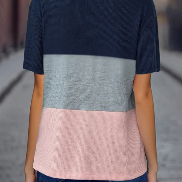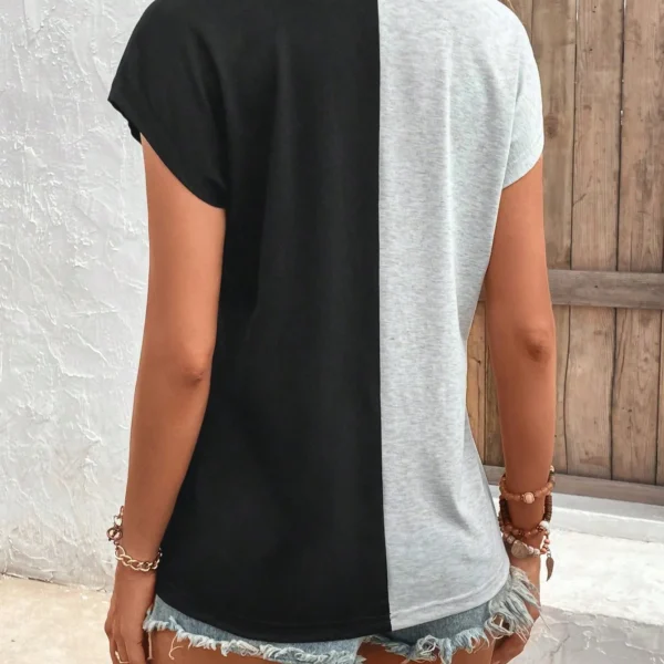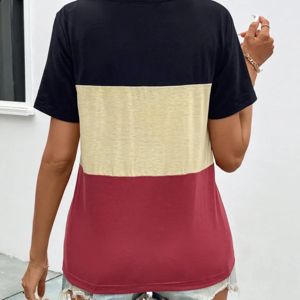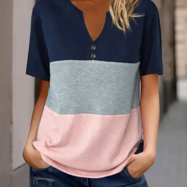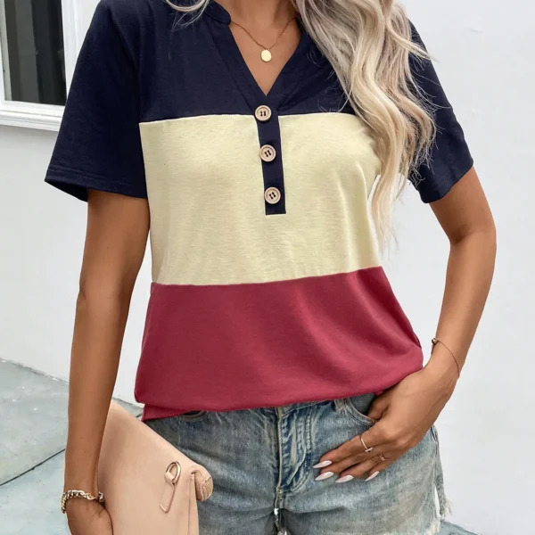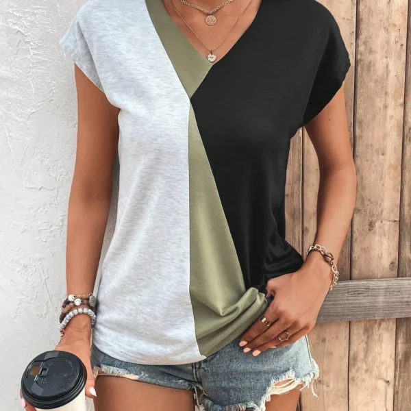 SMY Color Block Elegant And Trendy Small V-Neck T-Shirt