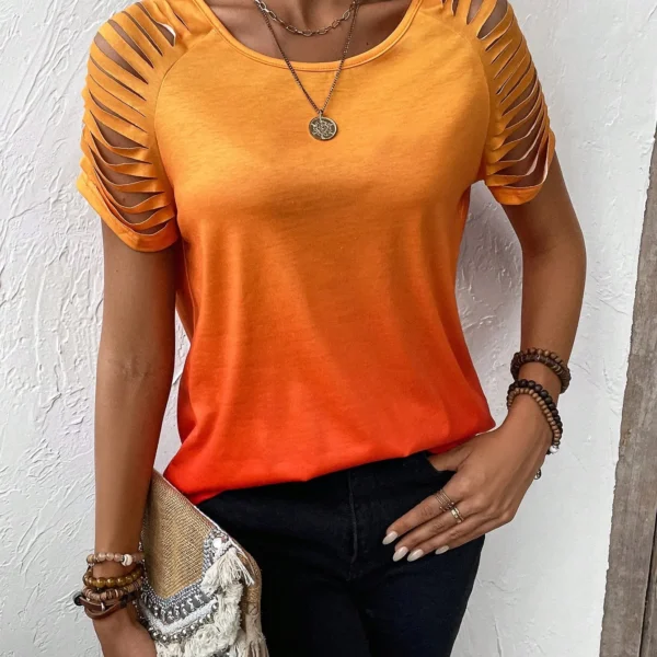 SMY Elegant Trend Small Round Neck Gradient T-Shirt