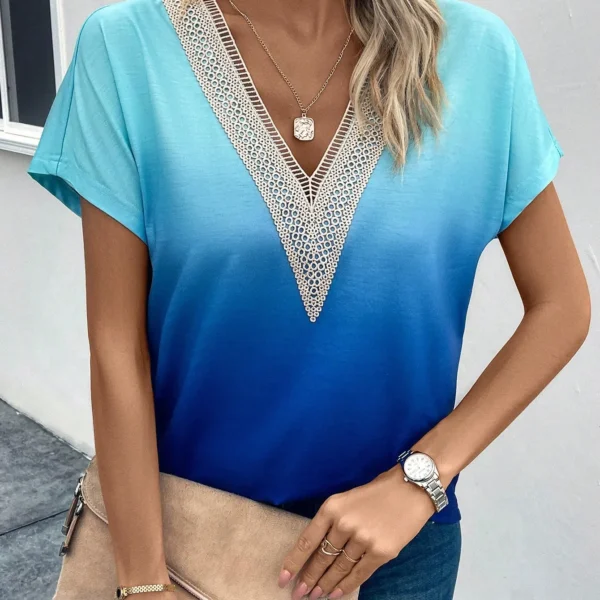 SMY Gorgeous Gradient Trend Small V-Neck T-Shirt