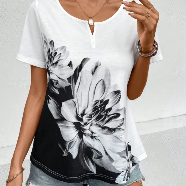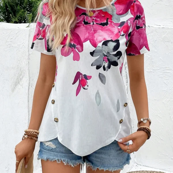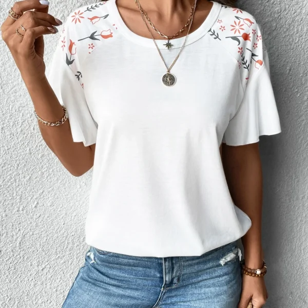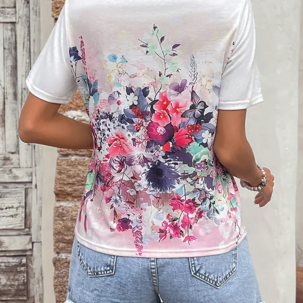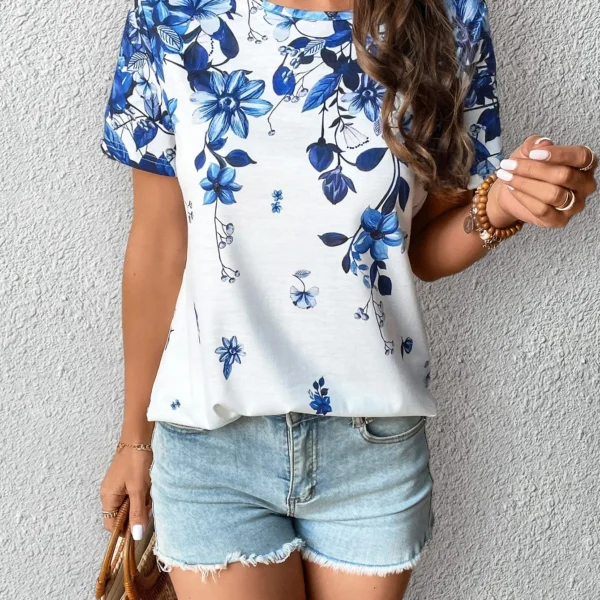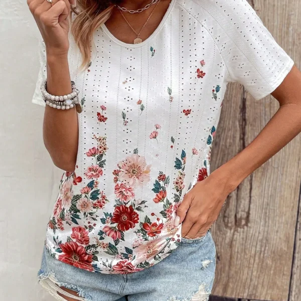 SMY Floral Print Casual Trend Small Round Neck T-Shirt
