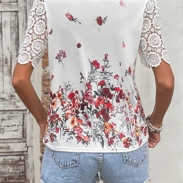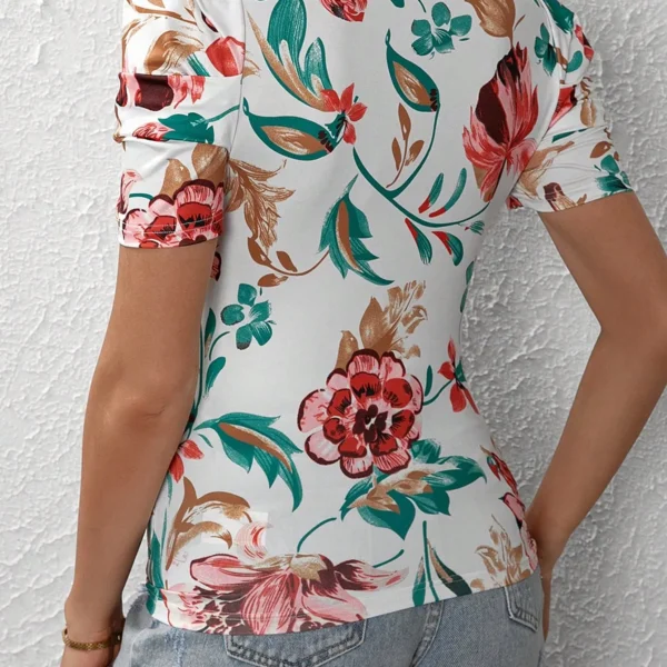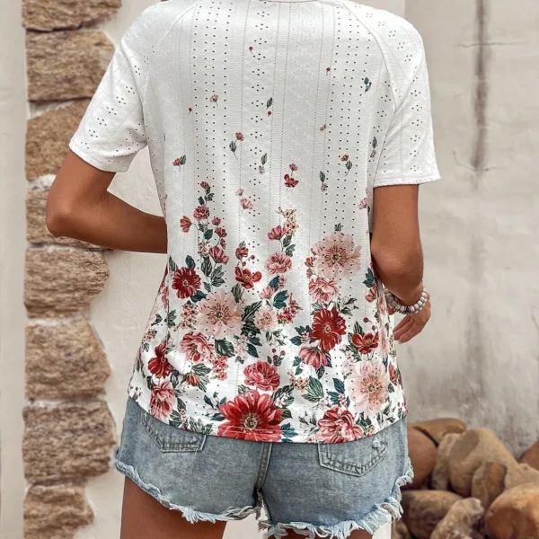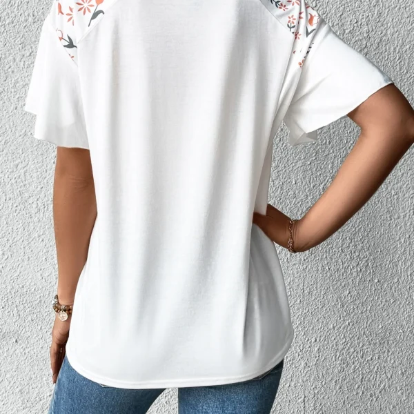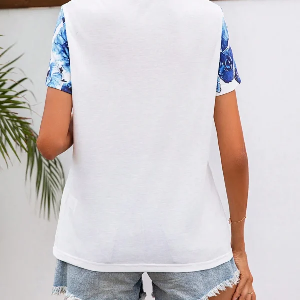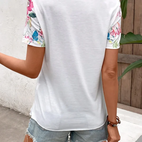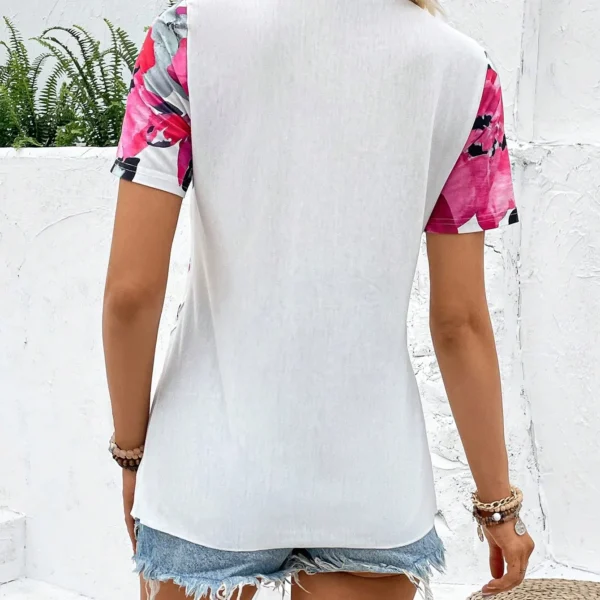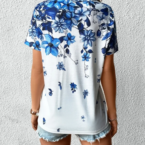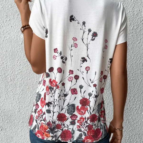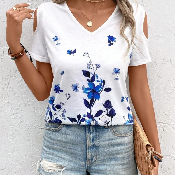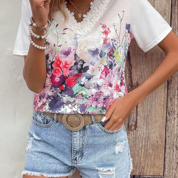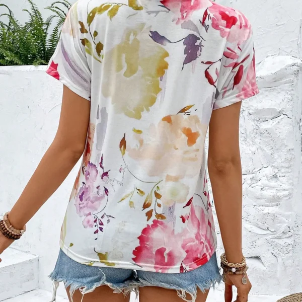 SMY Casual Floral Print Trend Small V-Neck T-Shirt For Summer