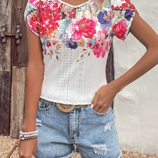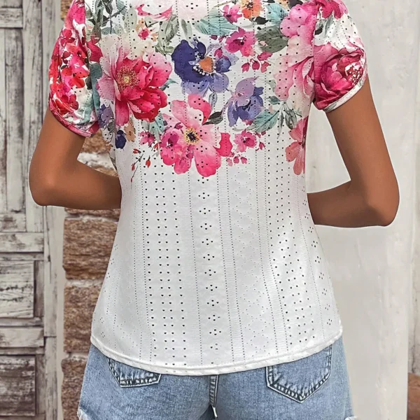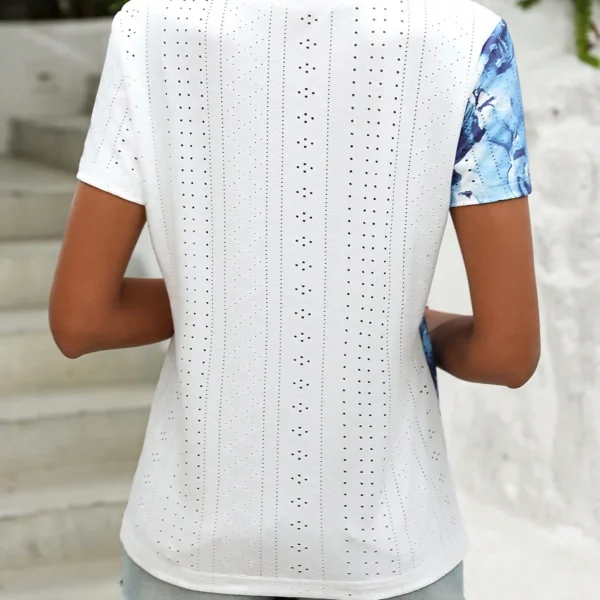 SMY Casual Trend Small Round Floral Print Neck T-Shirt