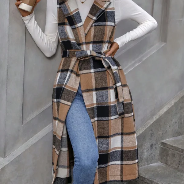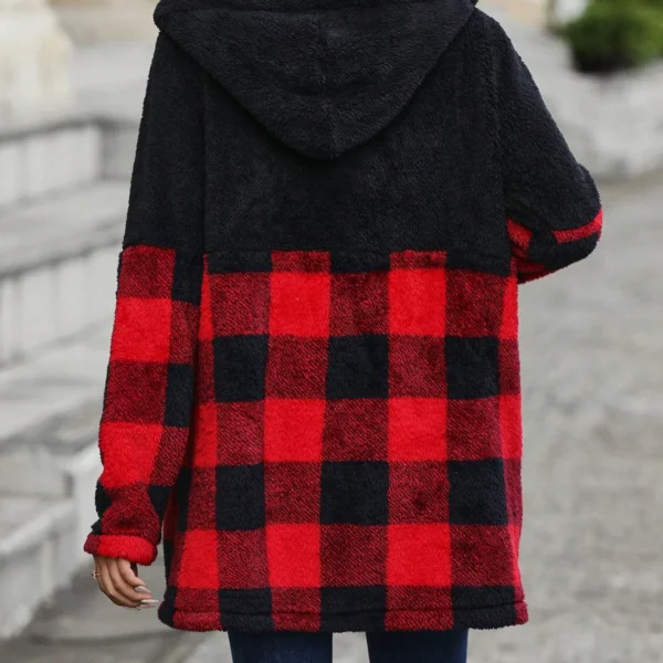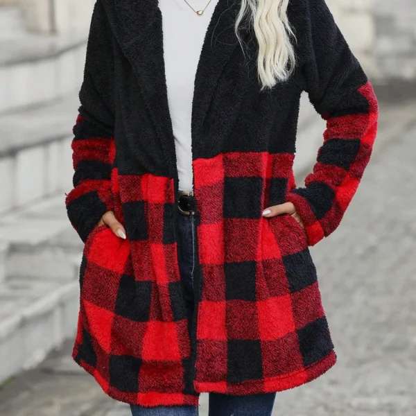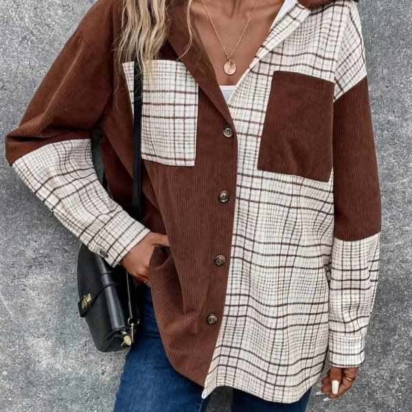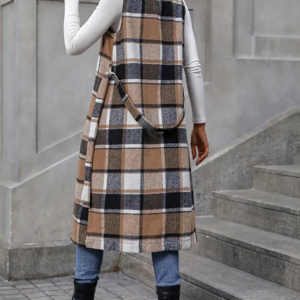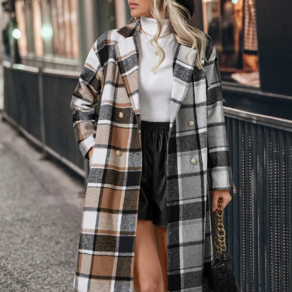 SMY Women’s Fashion Color Block Plaid Long Woolen Casual Coat