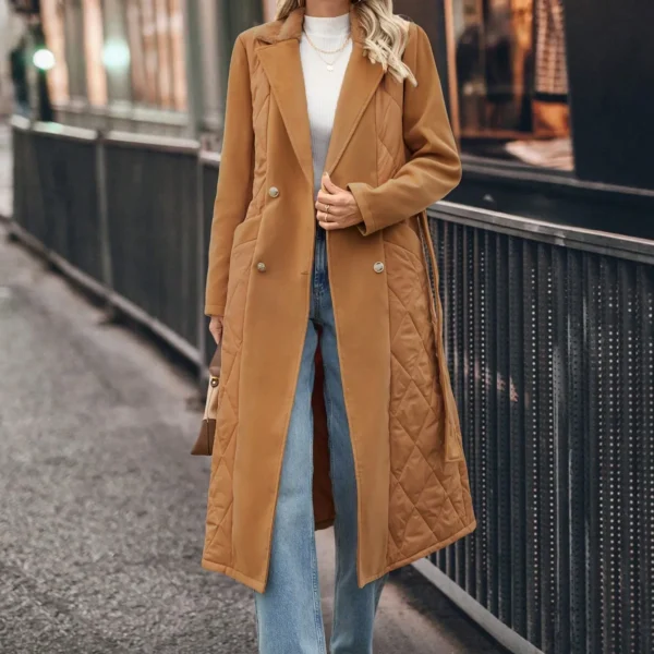 SMY Women’s Solid Color Lapel Neck Double Breasted Long Casual Winter Coat