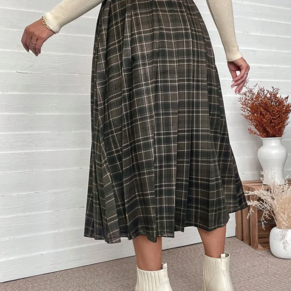 SMY Clasi Women’s Elegant Brown Plaid Skirt, Autumn/Winter