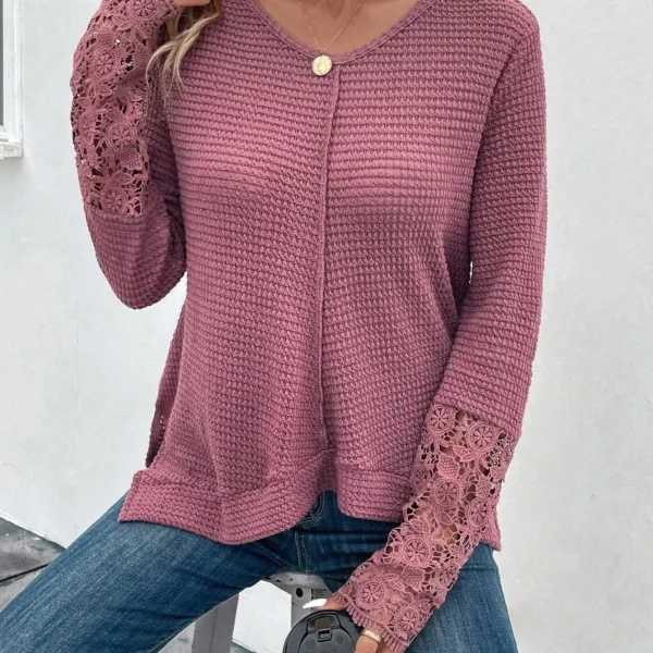 SMY Elegant Trend Small Round Neck Long Sleeved T-Shirt