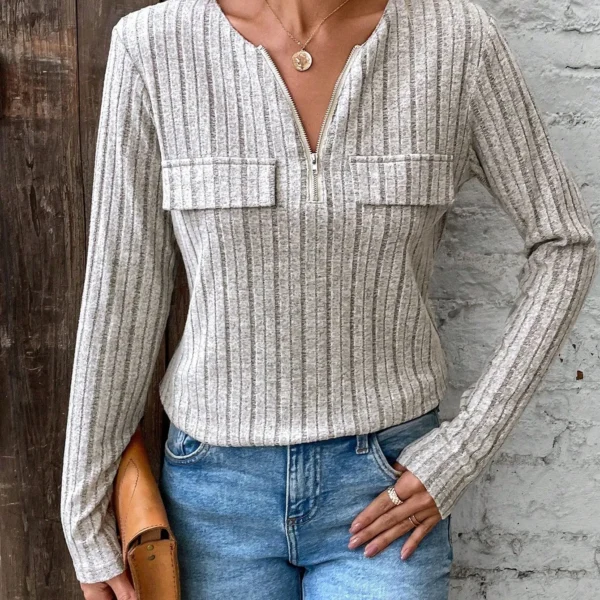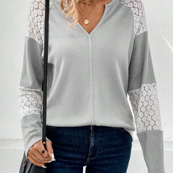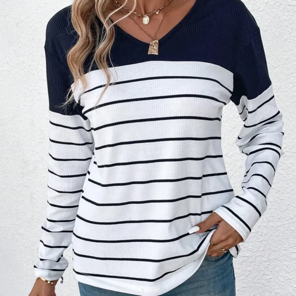 SMY Gorgeous Trend Small V-Neck Long Sleeved T-Shirt For Spring, Autumn