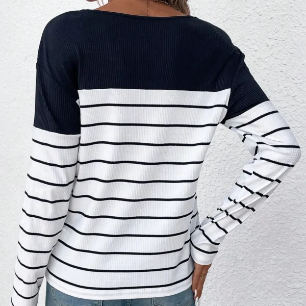 SMY Casual Trend Striped Small Round Neck T-Shirt