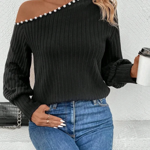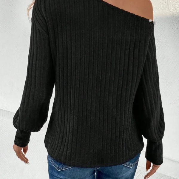 SMY Elegant Trend Slanted Shoulder Collar Long Sleeved T-Shirt