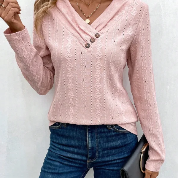 SMY Gorgeous Trend Small V-Neck Button T-Shirt For Spring, Autumn