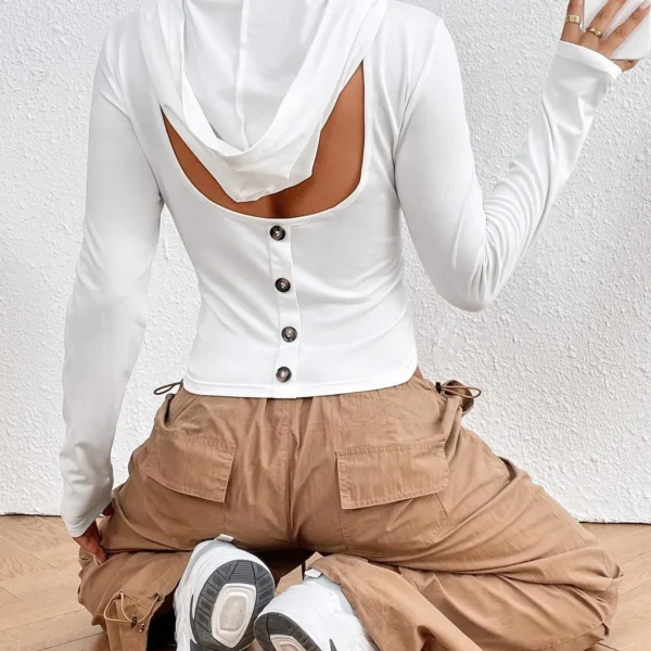 SMY Gorgeous Trend Hooded Women’s Slim Fit Backless Hooded Women’s T-Shirt