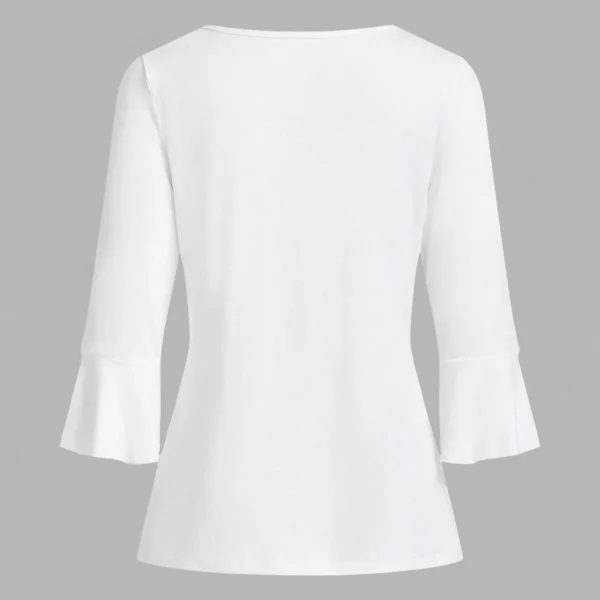 SMY Casual Small V-Neck Women’s Casual V-Neck Solid Color Trumpet Sleeve Pleated T-Shirt