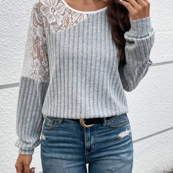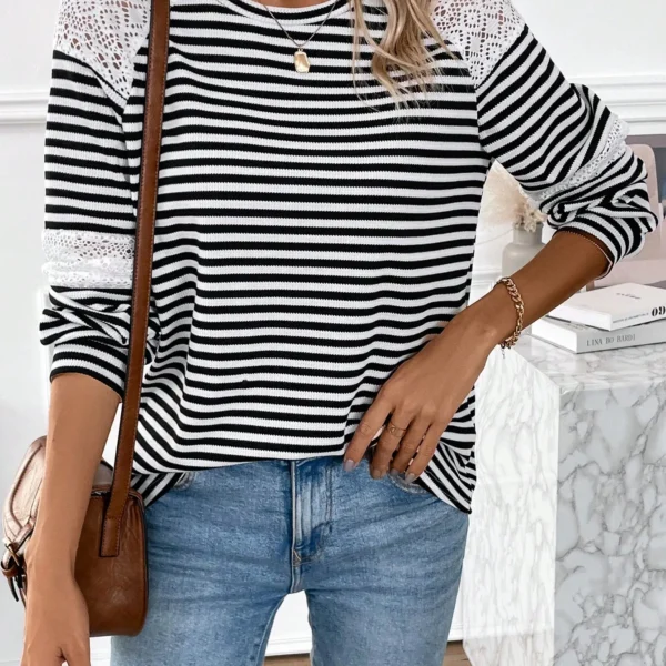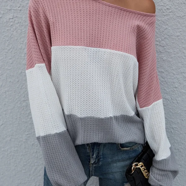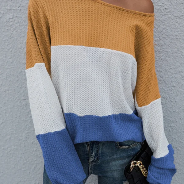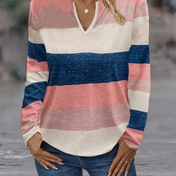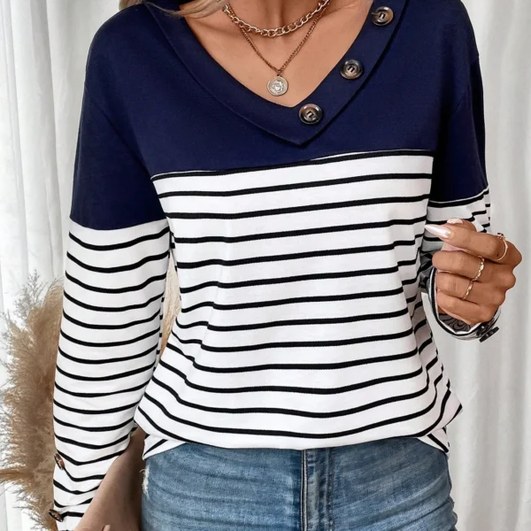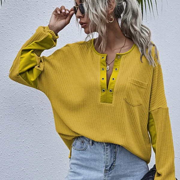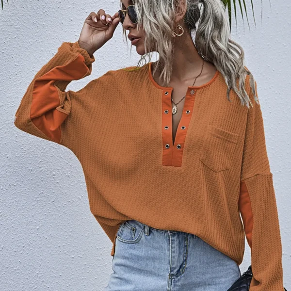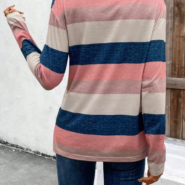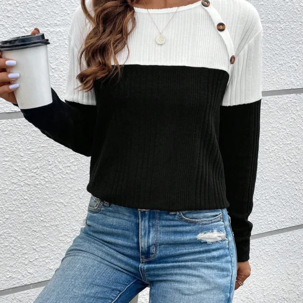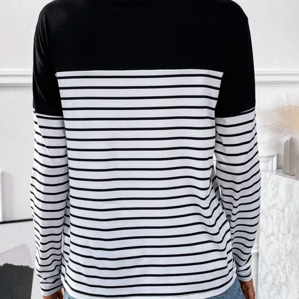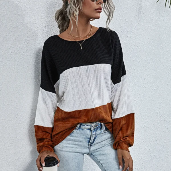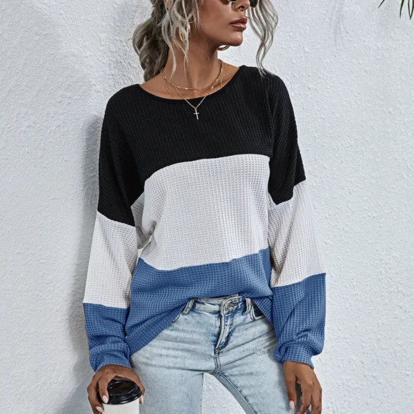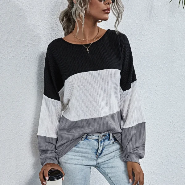 SMY Casual Color Block Round Neck T-Shirt For Spring, Autumn