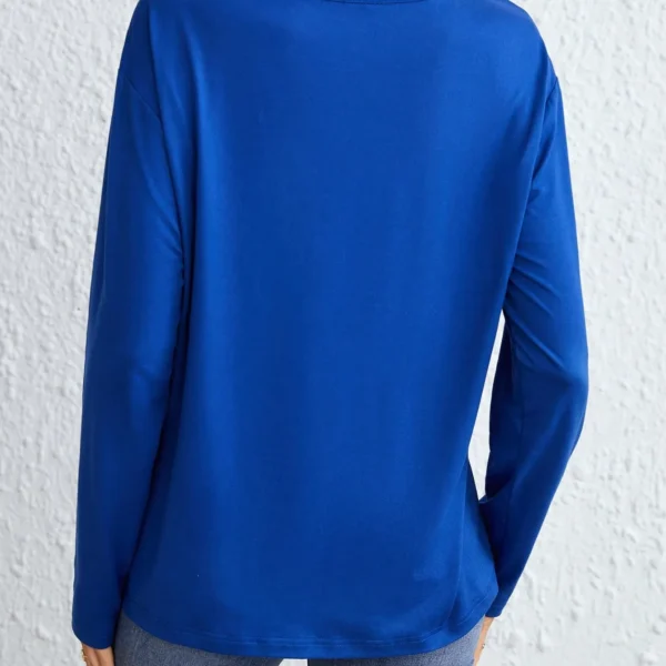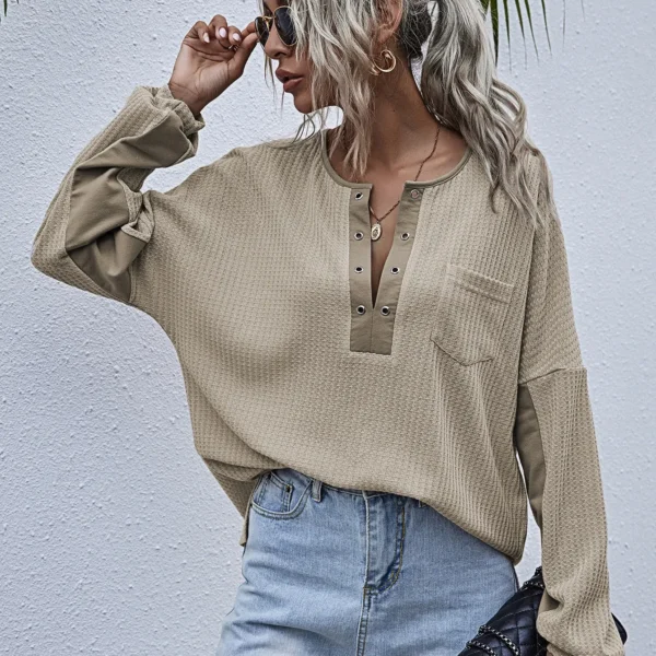 SMY Casual Notch V-Neck T-Shirt Top With Pocket