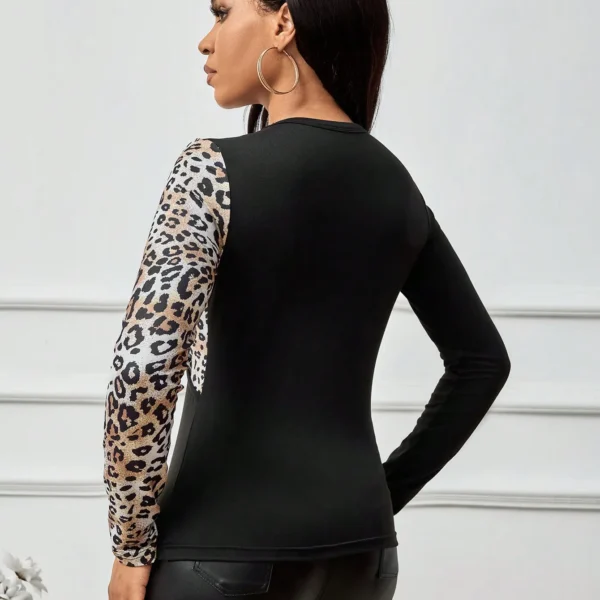SMY Casual Leopard Round Neck T-Shirt Elegant For Casual