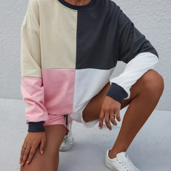 SMY Two Piece Set Of Casual Long Sleeve Round Neck Shorts