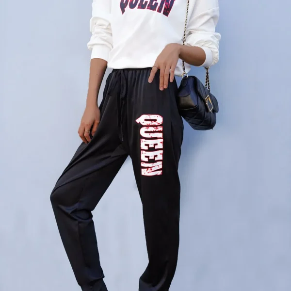 SMY Two Piece Set Of Casual Round Neck Long Pants With Letter Print