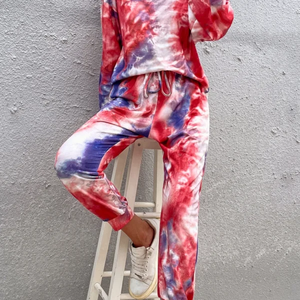 SMY Two Piece Set Of Casual Decorative Pattern Round Neck Long Pants