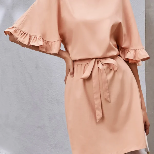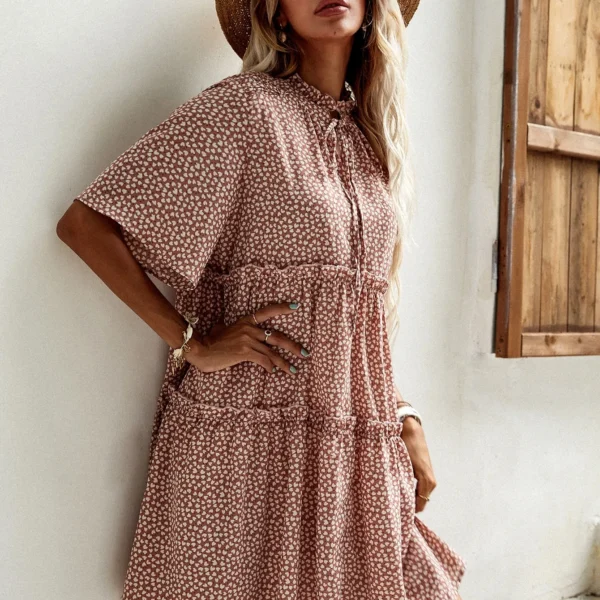 SMY Casual Ribbon Collar Short Sleeved Dress
