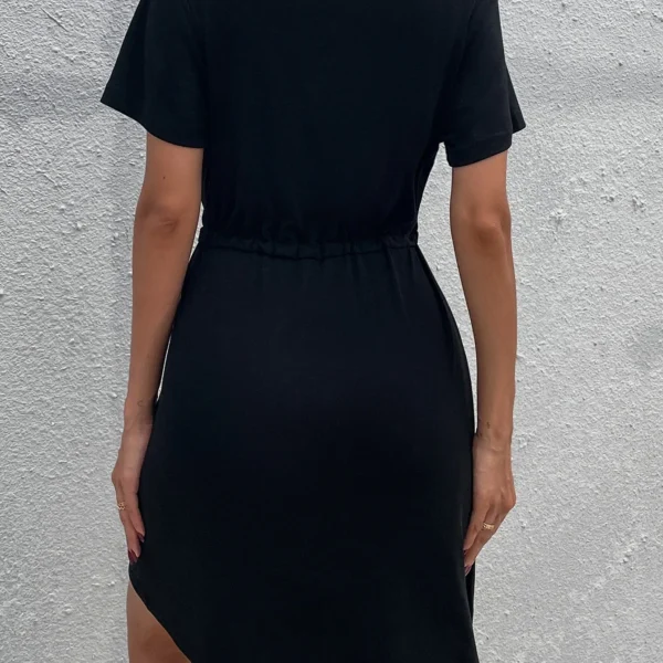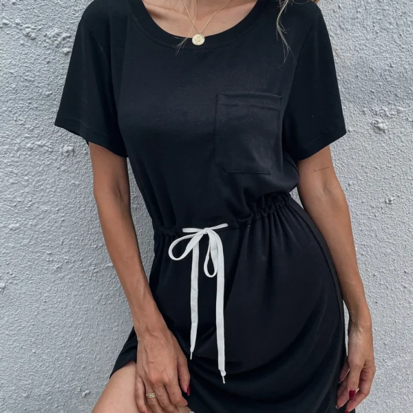 SMY Casual Drawstring Round Neck Short Sleeved Dress