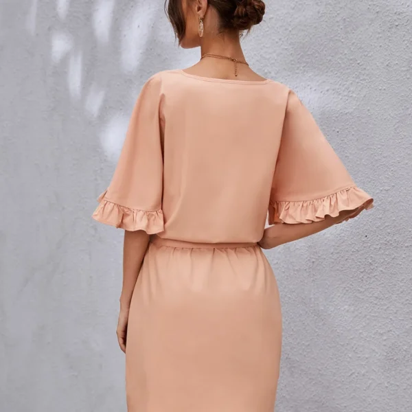 SMY Casual Leisure V-Neck Short Sleeved Dress