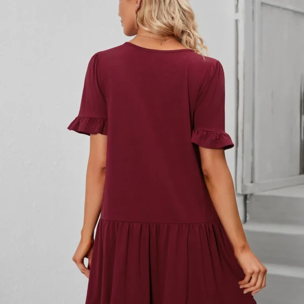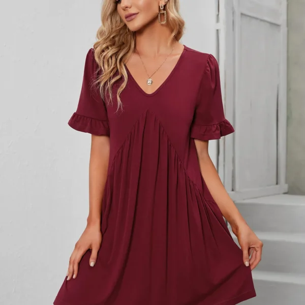 SMY Casual Deep V-Neck Short Sleeved Dress