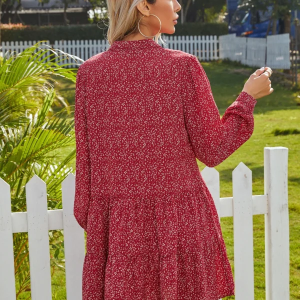 SMY Leisure Notch V-Neck Long Sleeved Dress