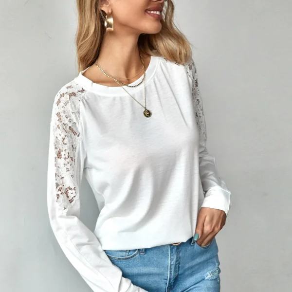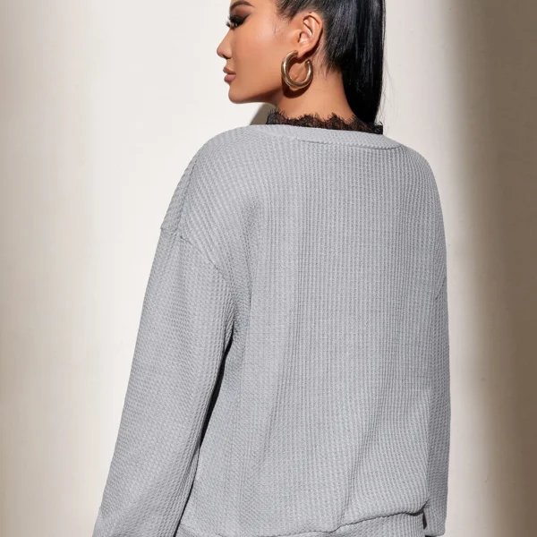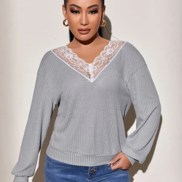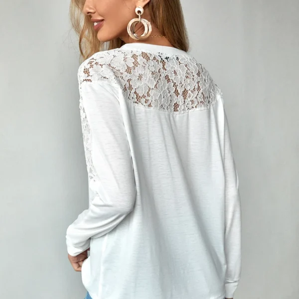 SMY Lace Stitching Casual V-Neck Regular Hoodie For Spring And Autumn