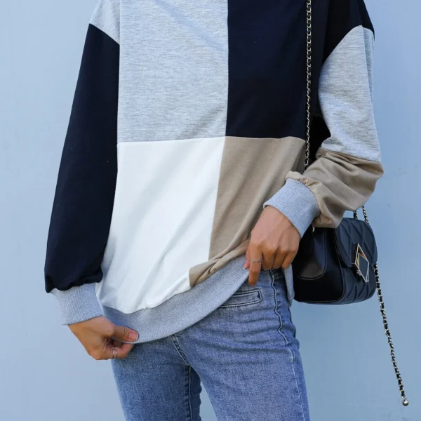 SMY Color Blocked Style Casual Round Neck Long Hoodie