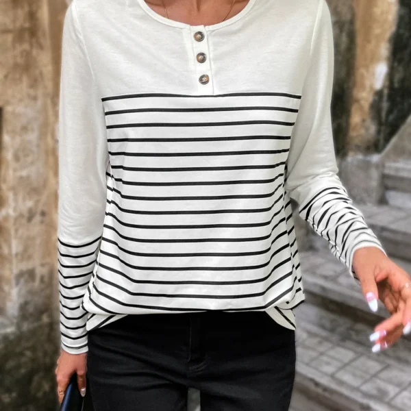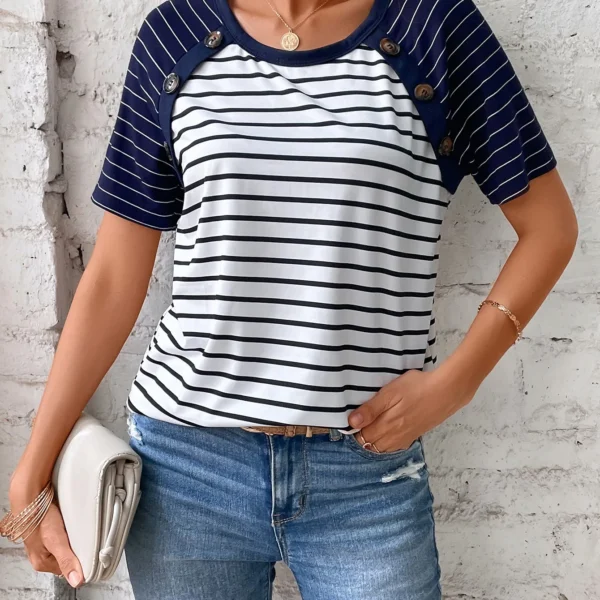 SMY Casual Trend Striped Small Round Neck T-Shirt