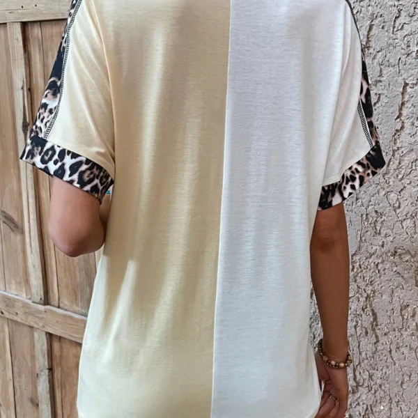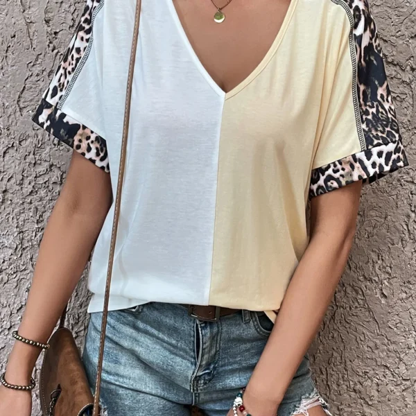 SMY Casual Leopard Cuffs Trend Small V-Neck T-Shirt