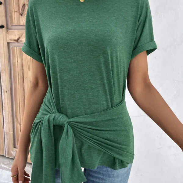SMY Elegant Tie Trend Small Round Neck T-Shirt