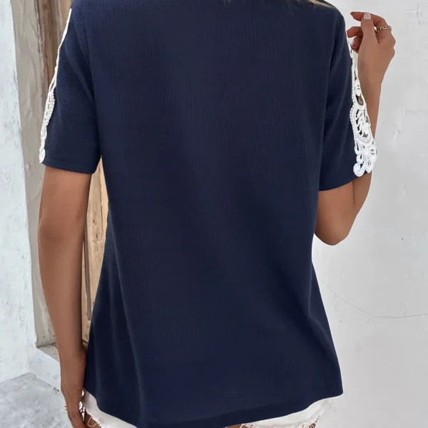 SMY Small Round Neck Short Sleeved Lace Stitching T-Shirt