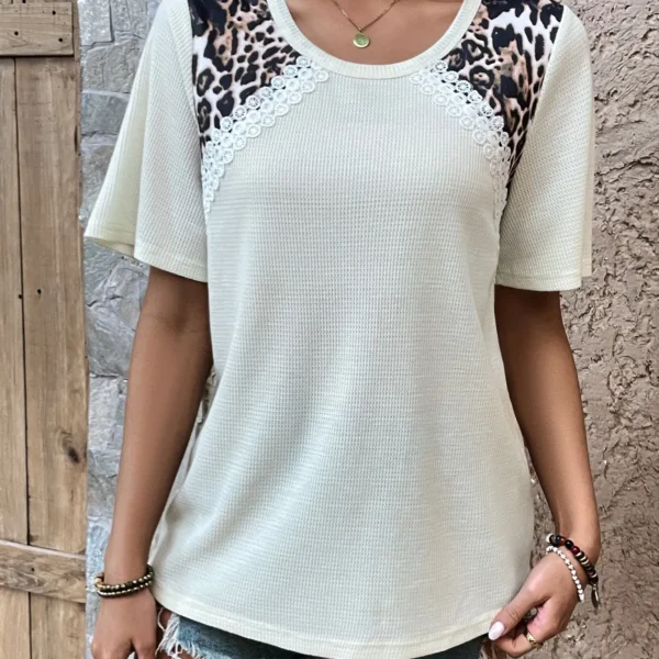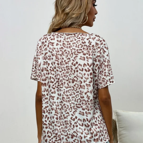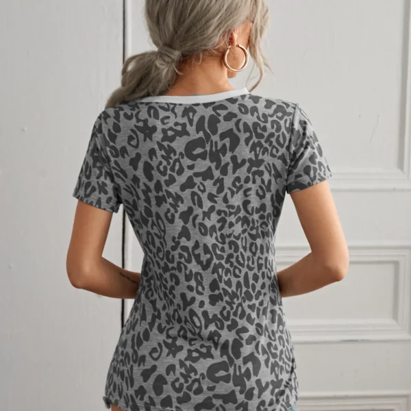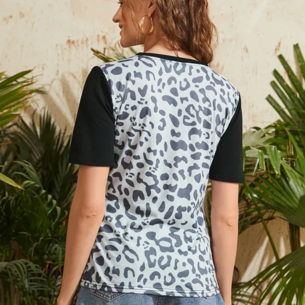 SMY Casual Round Leopard Neck Short Sleeved T-Shirt