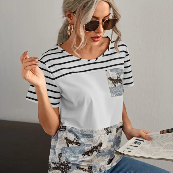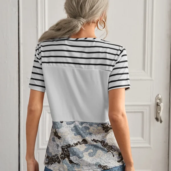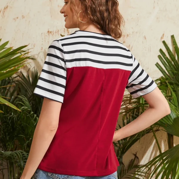 SMY Casual Color Block Round Neck Short Sleeved T-Shirt