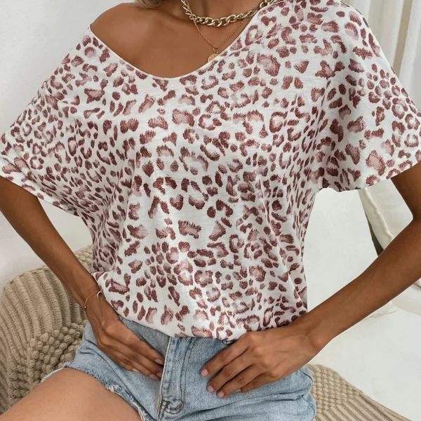 SMY Casual Shoulder Leopard Printed Trend Small Round Neck T-Shirt
