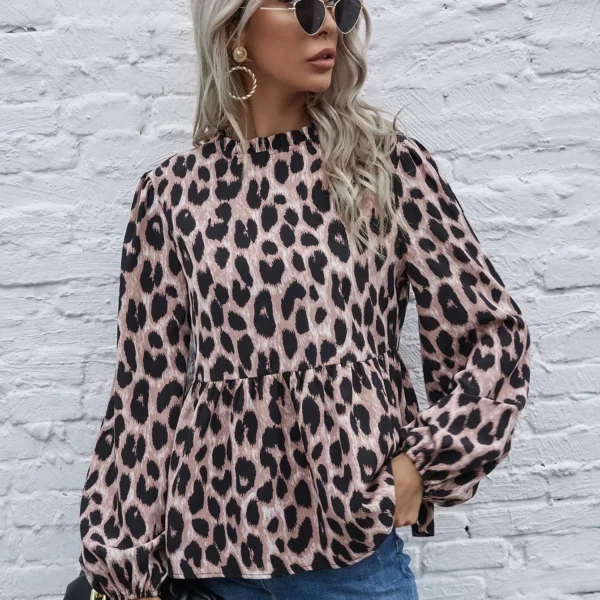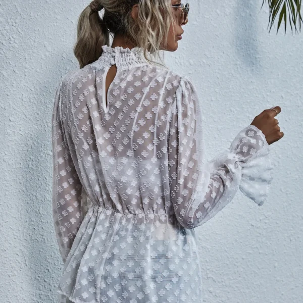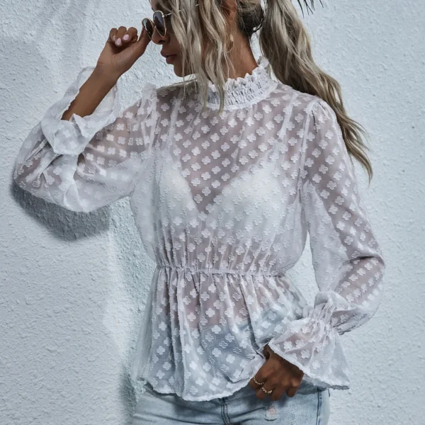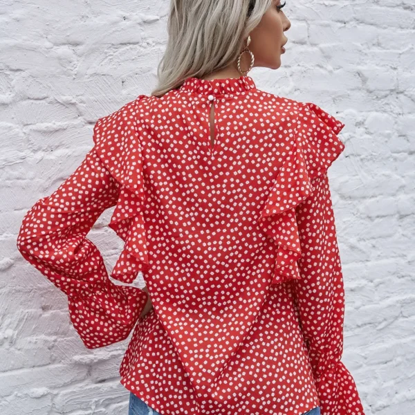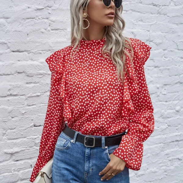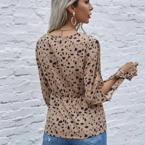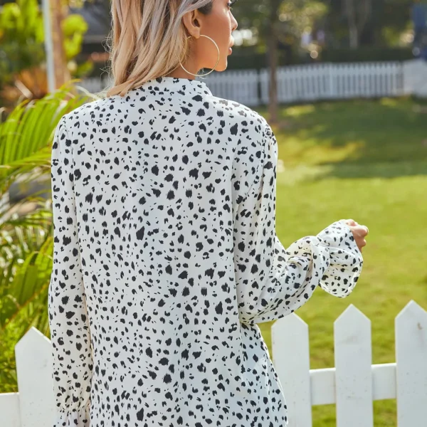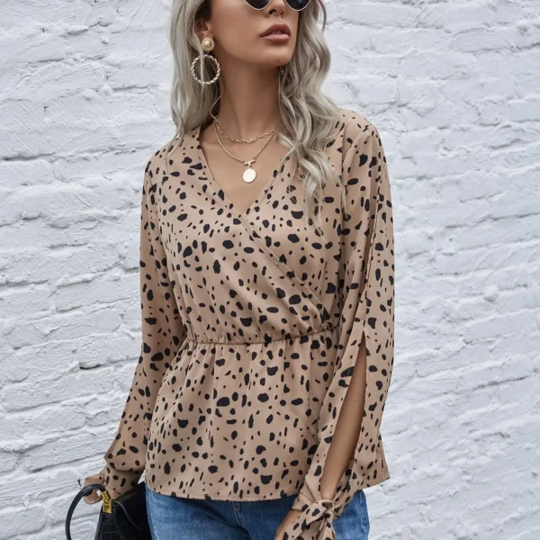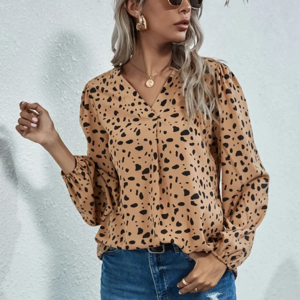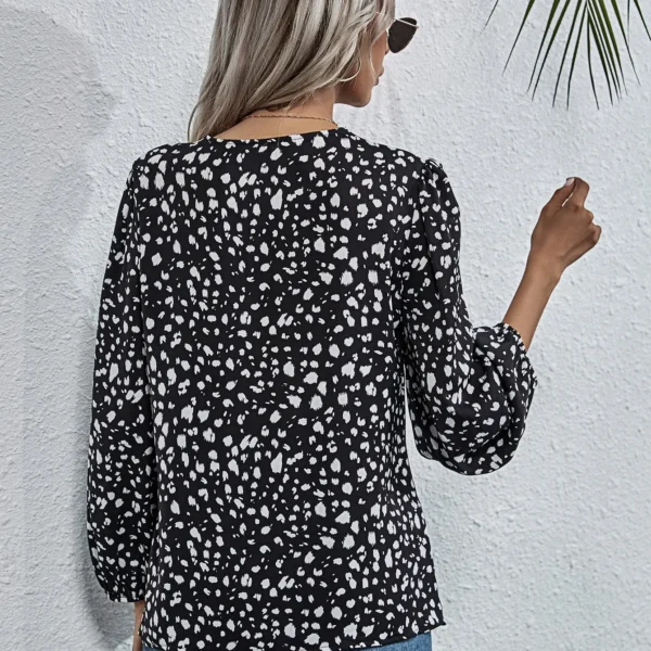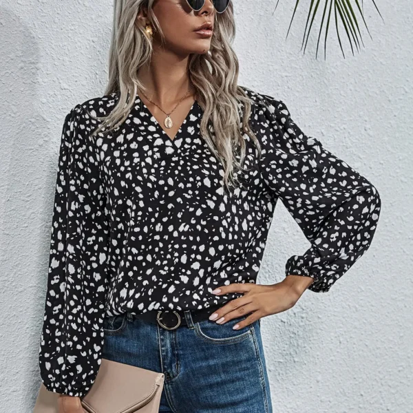 SMY Small V-Neck Dot Print Shirt For Spring, Autumn