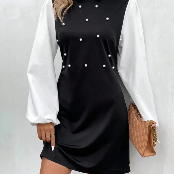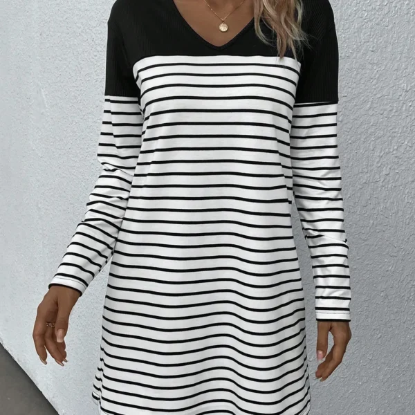 SMY Casual Trend Color Block Small Round Neck Dress